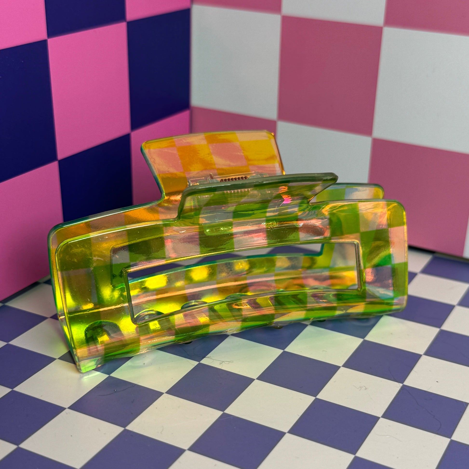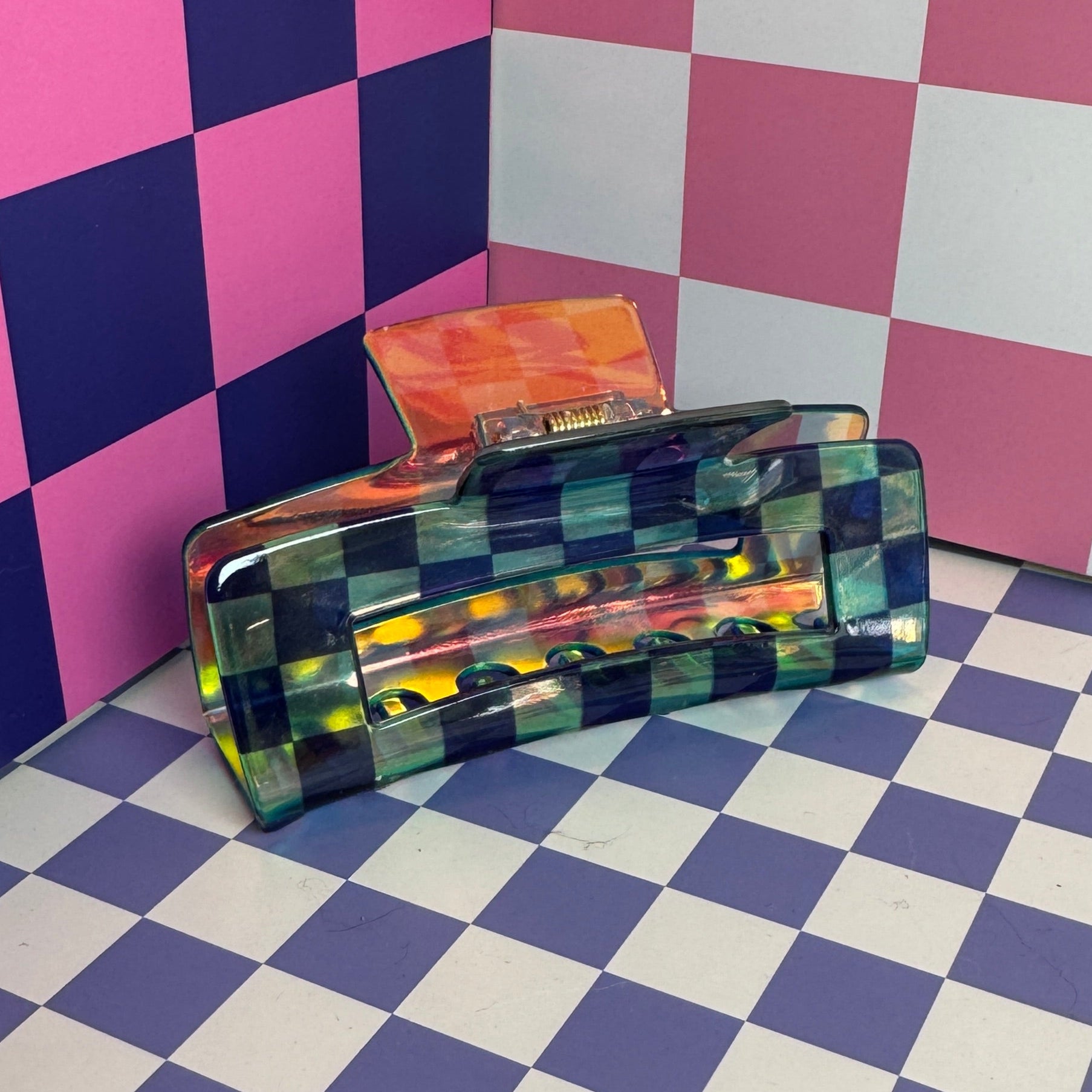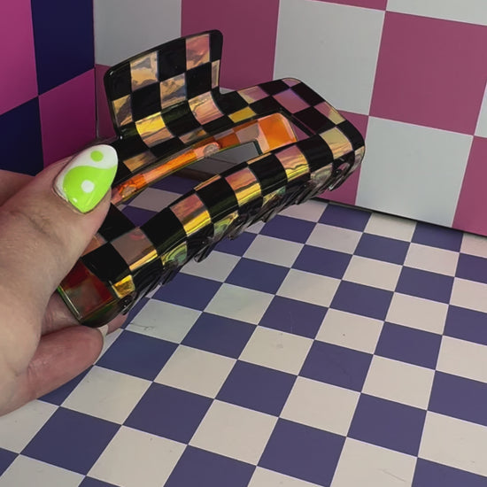 JUMBO IRIDESCENT CHECKERED HAIR CLAWS