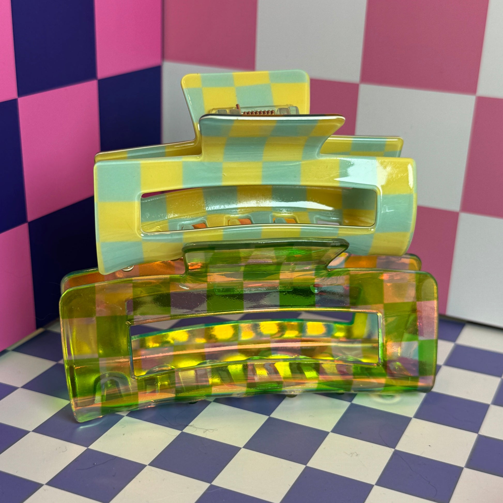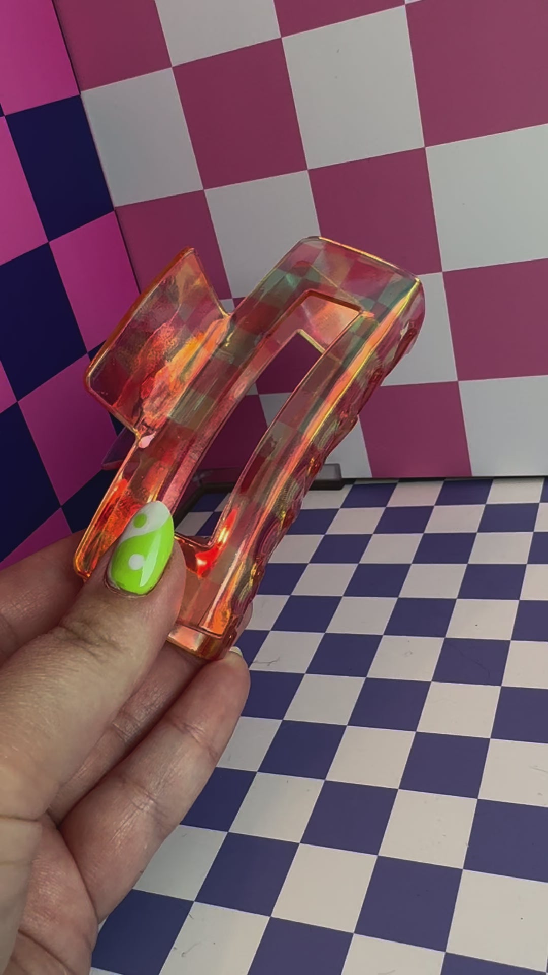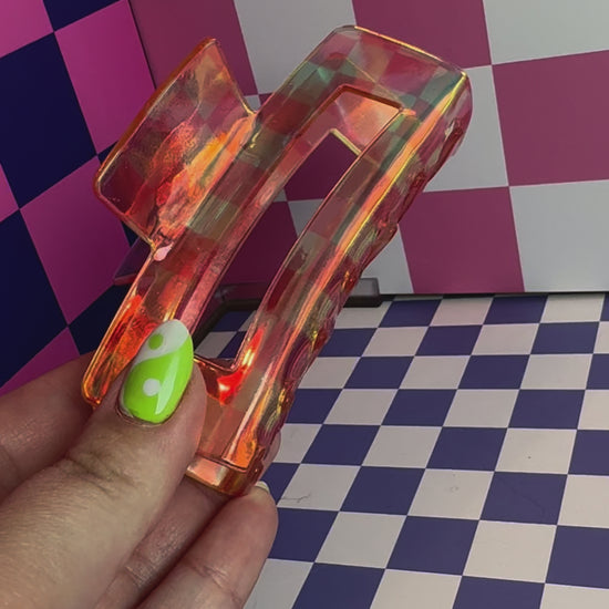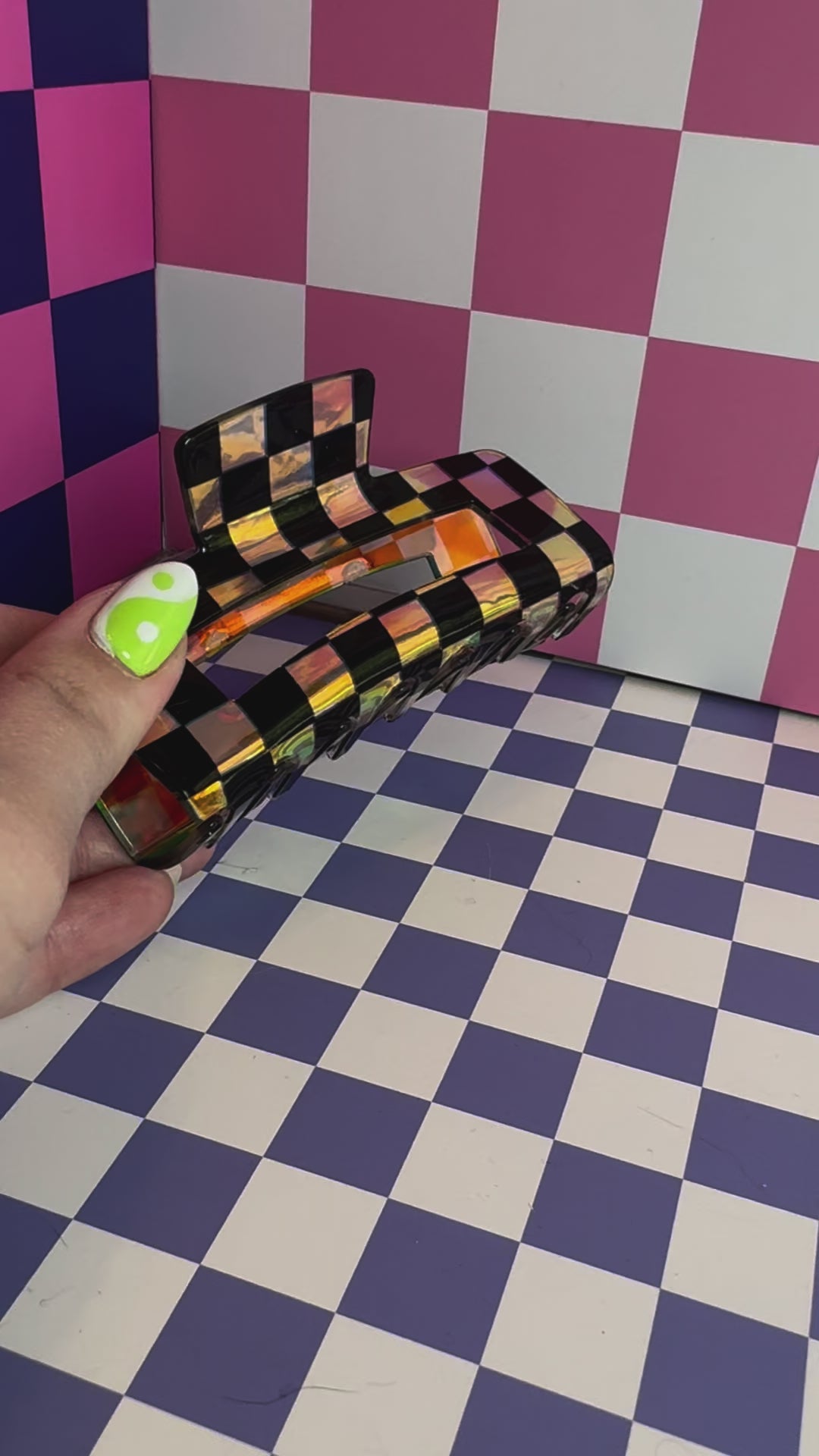 JUMBO IRIDESCENT CHECKERED HAIR CLAWS