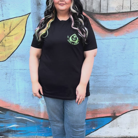 Summon some style with this Ouja board shirt featuring ghosts apologizing for missing your "call."