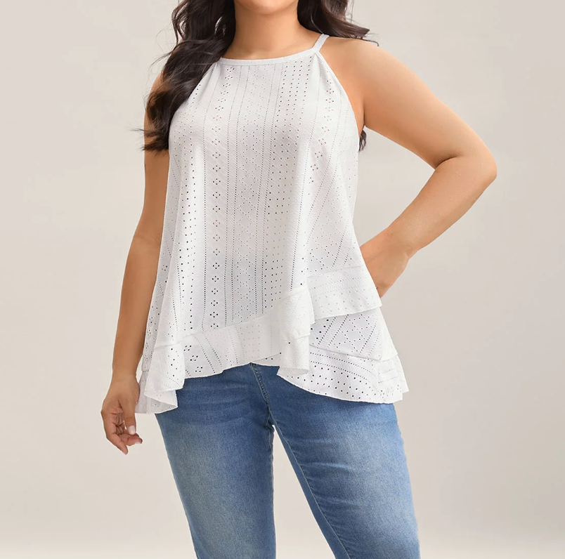 White Eyelet Ruffle Top Bloomchic 2X - #87